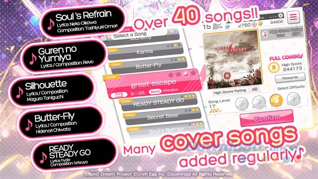 Trải nghiệm nhịp điệu sống động với hơn 40 ca khúc hấp dẫn trong BanG Dream! Girls Band Party!