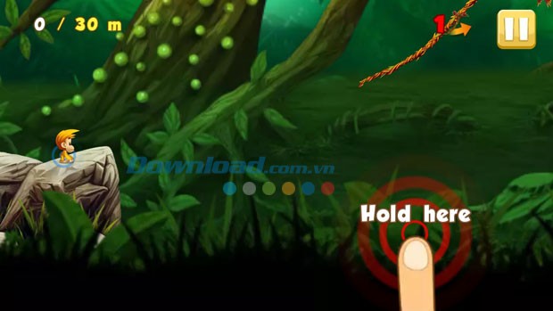 Nhiệm vụ của người chơi là chạm và giữ màn hình để khỉ con nhảy lên cao, sau đó thả tay để khỉ bay. Khi đến gần dây thừng đầu tiên, hãy chạm và giữ lại để khỉ bám vào.