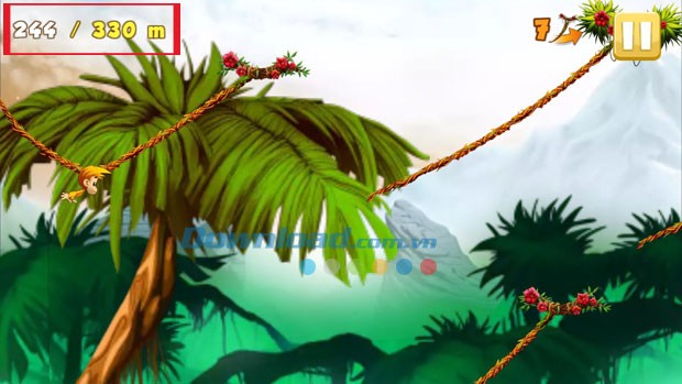 Màn chơi sẽ đòi hỏi khỉ phải đu dây một khoảng cách tối thiểu và sử dụng một số lượng dây thừng nhất định. Khi hoàn thành cả hai tiêu chí này, màn chơi sẽ kết thúc và bạn sẽ nhận được phần thưởng là tiền vàng và chuối với nhiều màu sắc khác nhau.