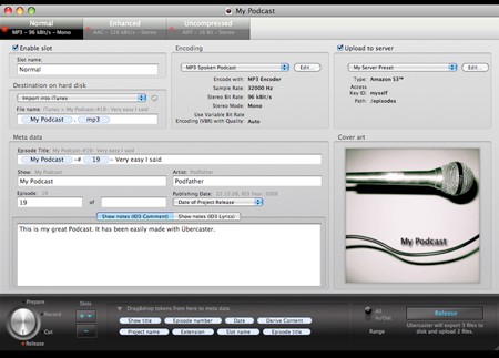 Phần mềm này hoạt động trên hệ điều hành Mac OS X, cung cấp các công cụ như ghi âm giọng nói, giọng hát, nhạc nền, tạo hiệu ứng âm thanh và nhiều yếu tố khác để mô phỏng một buổi biểu diễn trực tiếp. Übercaster hỗ trợ đa dạng các định dạng audio phổ biến và khả năng mã hóa file ở các định dạng mp3, AAC, AIFF…