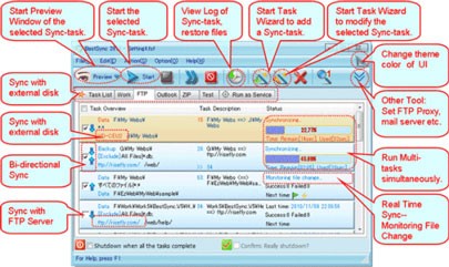 - Đồng bộ hóa dữ liệu với máy chủ FTP, hỗ trợ đầy đủ các giao thức FTP / FTPS / SFTP (SSH File Transfer Protocol).