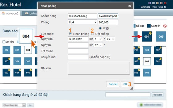 - Hệ thống quản lý thông tin khách hàng toàn diện, bao gồm lịch sử giao dịch và tình trạng phòng ốc chi tiết. Các thao tác như nhận phòng, trả phòng hoặc thêm các dịch vụ bổ sung đều được thực hiện một cách nhanh chóng, chỉ với một cú nhấp chuột duy nhất.