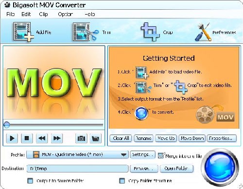 - Chuyển đổi đa dạng định dạng MOV: Với khả năng hỗ trợ nhiều định dạng video khác nhau, Bigasoft MOV Converter có thể dễ dàng chuyển đổi QuickTime MOV sang các định dạng như AVI, MPEG, WMV, MP4, MPEG4,...