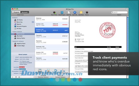 Bây giờ, bạn hoàn toàn có thể truyền tải sự chuyên nghiệp của mình thông qua các hóa đơn, giấy tờ, hợp đồng được thiết kế riêng với Billings – phần mềm văn phòng từng vinh dự nhận giải thưởng Apple Design Awards 2009.