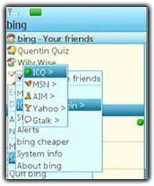 Cung cấp bởi cổng thông tin di động sms.at – một trong những công ty tiên phong trong lĩnh vực viễn thông không dây, đã giới thiệu dịch vụ WebSMS miễn phí đầu tiên với hơn một triệu người dùng đăng ký – Bing Messenger tương thích với nhiều dòng điện thoại Nokia, Motorola, Samsung, Sony Ericsson sử dụng hệ điều hành Symbian và Java (MIDP 2.0). Điều này đảm bảo khả năng kết nối mượt mà với dịch vụ dữ liệu GPRS.