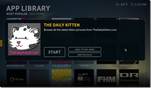 Click Add Shortcut để tạo biểu tượng shortcut trong menu pop-up Boxee.