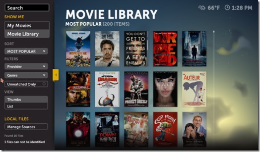 Boxee cho phép bạn thêm các chương trình truyền hình trực tuyến vào thư viện cá nhân và thêm phim, tập phim vào hàng đợi xem.