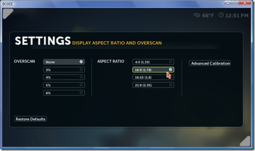 Nếu bạn muốn sử dụng Boxee song song với các ứng dụng khác, hãy chọn chế độ run windowed.