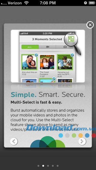 Burst for iOS giúp tổ chức video và hình ảnh thành các tệp tin dễ tìm kiếm và chia sẻ. Những khoảnh khắc được ghi lại trên thiết bị di động sẽ được đồng bộ hóa liền mạch trên website cá nhân. Ứng dụng cho phép chia sẻ những khoảnh khắc phù hợp với đúng đối tượng.