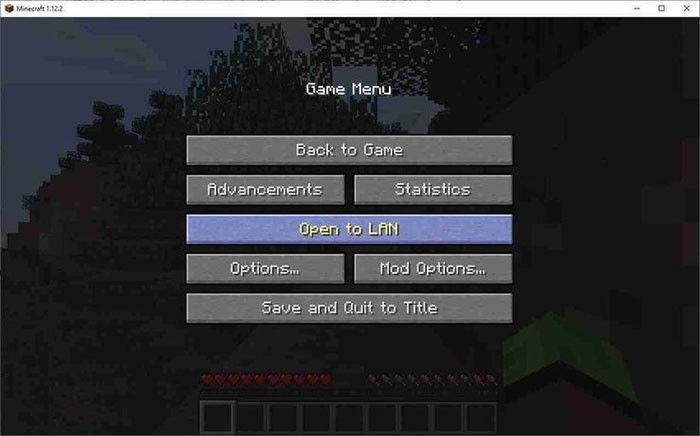 Đầu tiên, hãy mở menu trò chơi của thế giới mà bạn muốn sử dụng cheat. Sau đó, chọn tùy chọn Open to LAN.