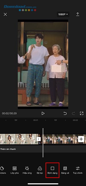 Bên cạnh đó, để tối ưu hóa video cho các nền tảng cụ thể như TikTok hoặc Instagram, người dùng có thể vuốt màn hình sang phải để truy cập và lựa chọn mục Định dạng.