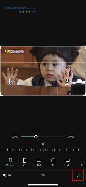 Trong trường hợp muốn cắt video theo một tỷ lệ tùy chỉnh, hãy chọn Miễn phí và khoanh vùng đoạn video mong muốn. Sau khi hoàn tất, nhấn vào biểu tượng dấu tích ở góc dưới bên phải màn hình để xác nhận và lưu lại những thay đổi đã thực hiện.