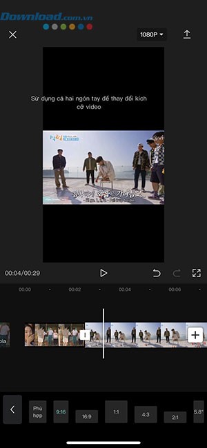 Sau khi chọn định dạng mong muốn, người dùng có thể tiếp tục sử dụng thao tác chụm và mở rộng để điều chỉnh video sao cho vừa vặn và hiển thị tốt nhất trong khung hình đã chọn.