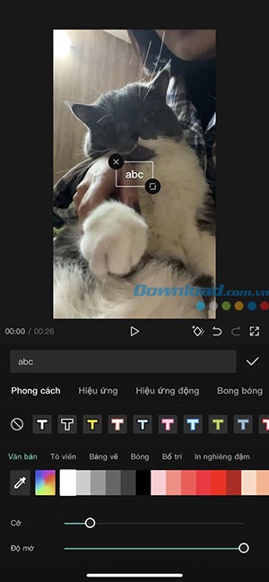 Chọn Văn bản, nhập nội dung mong muốn, sau đó tùy chỉnh diện mạo của chữ thông qua các tùy chọn Phong cách, Hiệu ứng hoặc Bong bóng.