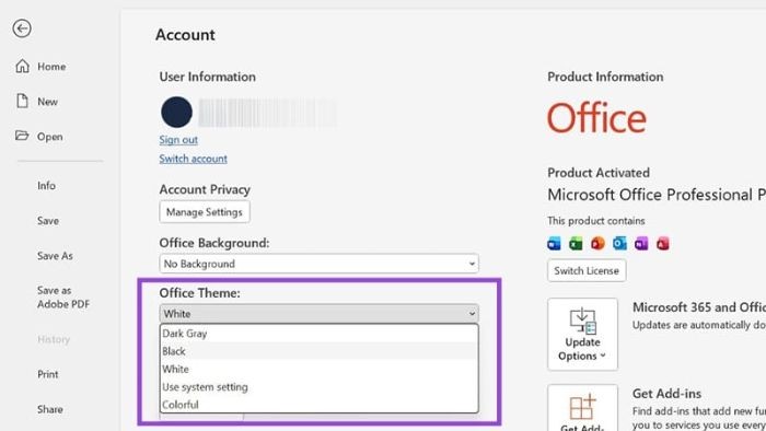 Thay đổi giao diện và kích hoạt Dark Mode trên Microsoft Office