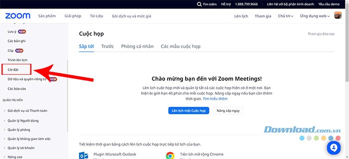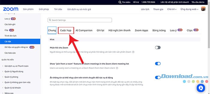 Bước 3: Trong giao diện cài đặt, chuyển sang tab Cuộc họp.