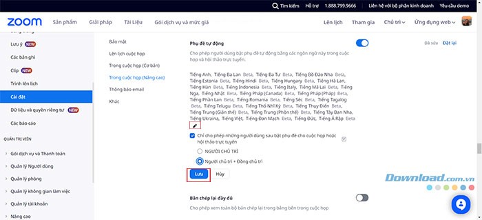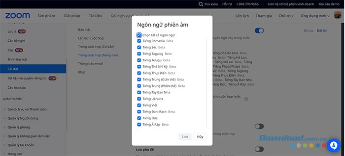 Ngoài ra, Zoom còn cho phép người dùng lựa chọn ngôn ngữ để phiên âm.