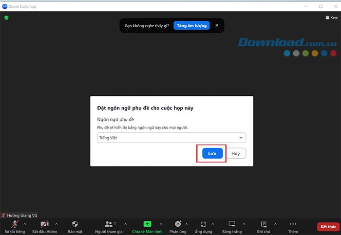 Để hiển thị phụ đề, người dùng chỉ cần nhấn vào "Hiển thị phụ đề", sau đó chọn "Tiếng Việt" và cuối cùng là nhấn "Lưu". Thao tác này sẽ tự động bật chú thích cho các cuộc gọi video trên Zoom.