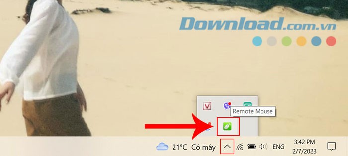 Bước 2: Sau khi quá trình cài đặt hoàn tất, hãy tìm và nhấp vào biểu tượng mũi tên trên thanh taskbar, sau đó chọn Remote Mouse từ danh sách hiển thị.