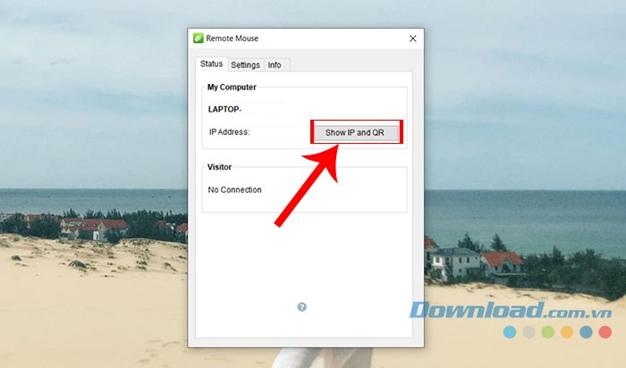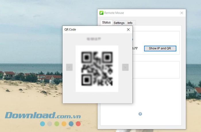 Bước 3: Giao diện chính của Remote Mouse sẽ được mở ra. Trong tab Status, lựa chọn và nhấn vào Show IP and QR.
