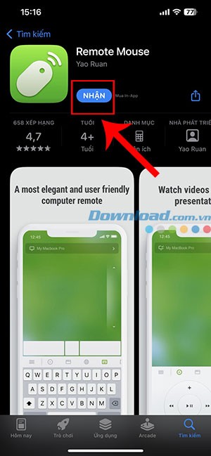 Bước 4: Trên iPhone của bạn, hãy tải về ứng dụng Remote Mouse cho iOS từ App Store.