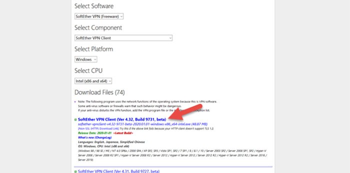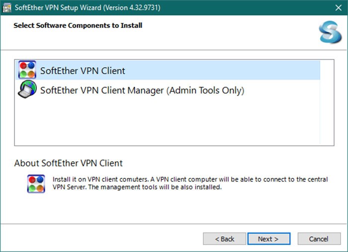Hãy chọn phiên bản mới nhất của phần mềm và thực hiện cài đặt tương tự như các ứng dụng Windows thông thường khác. Trong quá trình cài đặt, khi được yêu cầu chọn các thành phần, ưu tiên lựa chọn SoftEther VPN Client.