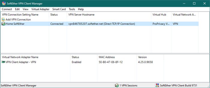Như vậy, bạn đã thiết lập kết nối thành công với máy chủ SoftEther VPN và có thể sử dụng nó cho các hoạt động truy cập Internet của mình.