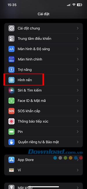 Bước 2: Truy cập ứng dụng Cài đặt trên điện thoại, sau đó chọn mục Hình nền.