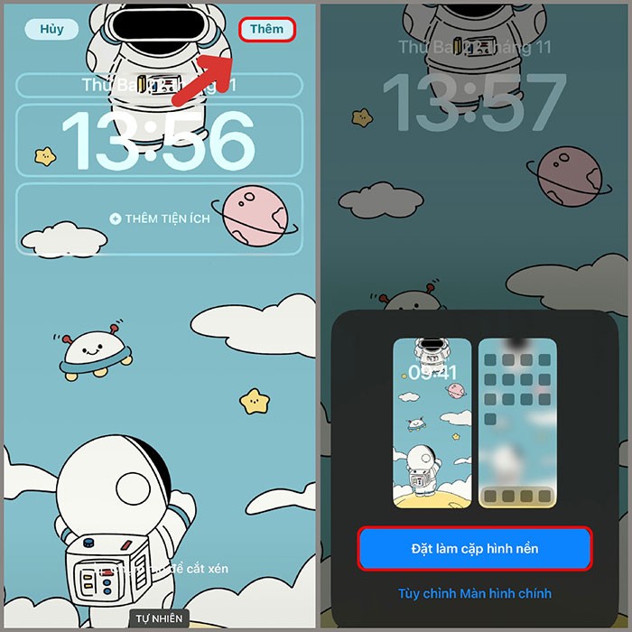Sau khi đã căn chỉnh hoàn tất, nhấn vào Thêm và lựa chọn Đặt làm cặp hình nền để hoàn tất quá trình.