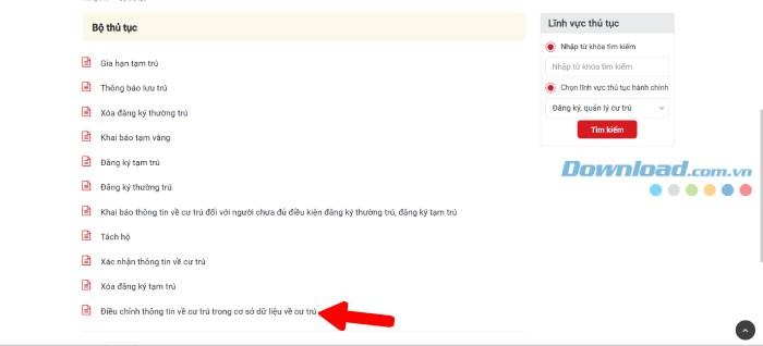 - Loại thủ tục hành chính: Điều chỉnh thông tin về cư trú trong CSDL.