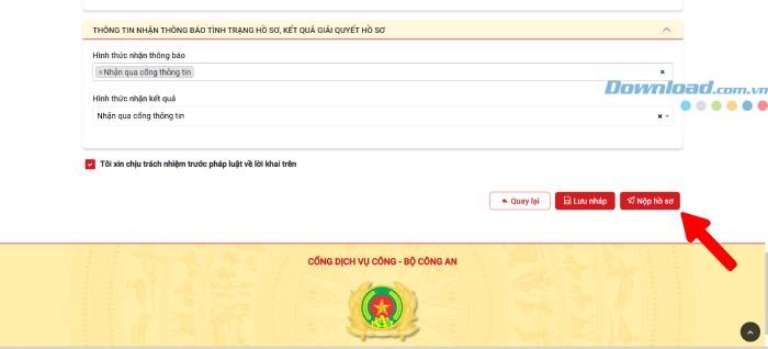 Bước 8: Cuối cùng, nhấn vào nút Nộp hồ sơ để hoàn tất quá trình.