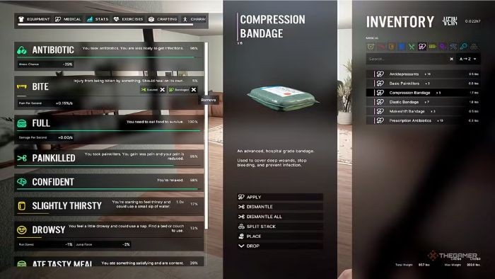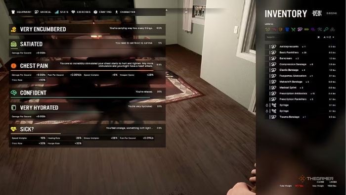 Nếu trạng thái y tế của nhân vật hiển thị Sick, người chơi vẫn có cơ hội điều trị bằng các phương pháp thông thường.