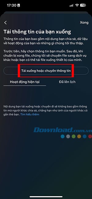 Sau đó, chọn Tải xuống hoặc chuyển thông tin để bắt đầu quá trình.