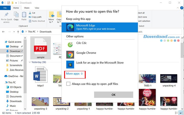 Nếu bạn không thấy tùy chọn Word trong danh sách, hãy chọn Choose another app, sau đó chọn More apps.