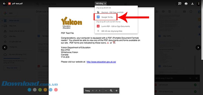 Thao tác này sẽ mở file PDF trong trang Google Tài liệu. Trong trường hợp không thấy Google Tài liệu hiển thị trong danh sách tùy chọn, bạn có thể tự thêm nó vào.