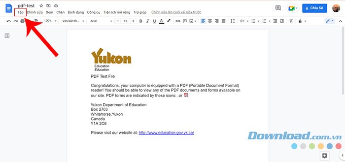 Bước 5: Với thao tác này, người dùng có thể dễ dàng thực hiện chỉnh sửa nội dung của file PDF trực tiếp trong Google Tài liệu. Sau khi hoàn tất các thay đổi, nhấp vào tab Tệp để mở menu.
