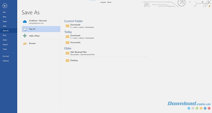 - Windows: Chọn File, sau đó nhấp vào Save As > This PC. Nhập tên file, chọn vị trí lưu mong muốn ở phía bên trái cửa sổ và nhấp vào Save.