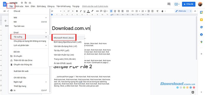 Sau khi đã hoàn tất việc chỉnh sửa file PDF trong Google Tài liệu, người dùng có thể lưu file đó dưới định dạng Word và tải xuống máy tính cá nhân.