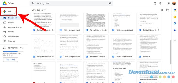 Bước 1: Truy cập Google Drive thông qua trình duyệt web và chọn mục Mới.