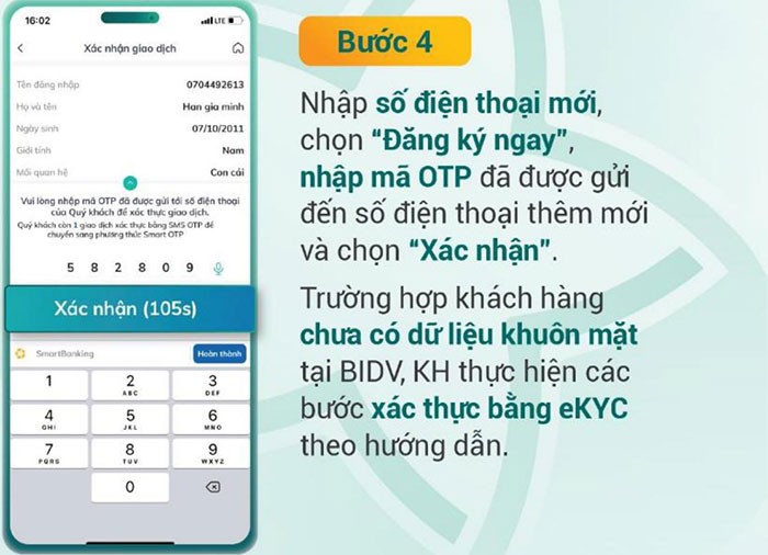 Bước 4: Nhập số điện thoại mới, sau đó nhấn Đăng ký ngay. Tiếp đến, nhập mã OTP được gửi đến số điện thoại mới và nhấn Xác nhận.
