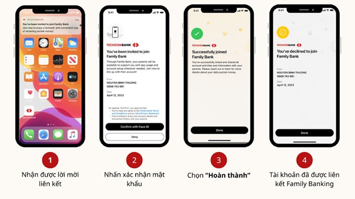 Liên kết tài khoản Techcombank giữa bố mẹ và con cái qua TCB Family