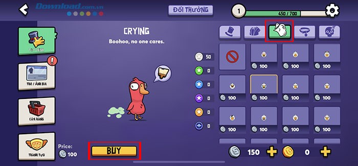 Một đám mây hiệu ứng sẽ xuất hiện phía sau nhân vật ngỗng hoặc vịt, kèm theo biểu tượng cảm xúc tương ứng với hiệu ứng đã chọn.