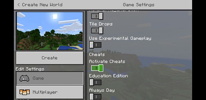 Đối với chế độ chơi đơn trong phiên bản Bedrock, người chơi có thể tự điều chỉnh các quyền hạn này bằng cách truy cập tab Trò chơi trong menu cài đặt và bật “Cho phép gian lận”. Tuy nhiên, cần lưu ý rằng việc kích hoạt gian lận sẽ ngăn chặn việc mở khóa thành tích trong thế giới đó một cách vĩnh viễn – ngay cả khi bạn tắt tính năng này sau đó.