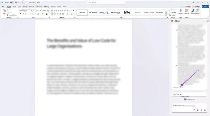 Bước 4: Nhấn biểu tượng gửi để gửi yêu cầu và chờ đợi trong vài giây để Copilot xử lý. Sau đó, Copilot sẽ quét toàn bộ tài liệu và cung cấp danh sách đầy đủ các tham chiếu đã tìm thấy.
