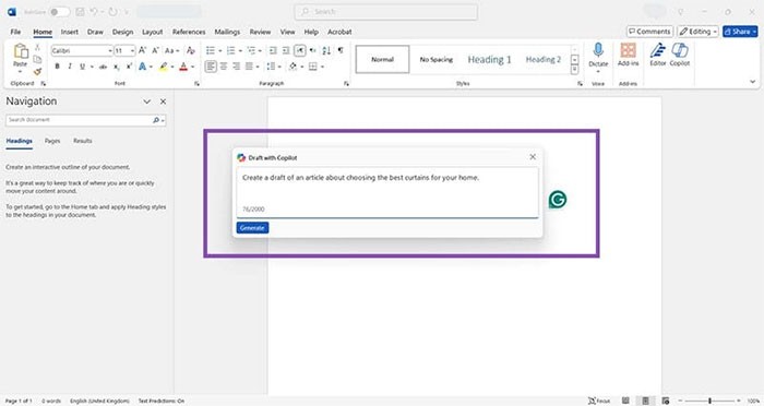 Copilot có thể hỗ trợ người dùng chuyển đổi từ một trang giấy trắng hoàn toàn thành một bản nháp hoàn chỉnh một cách nhanh chóng, tiết kiệm thời gian đáng kể so với việc tự mình xây dựng nội dung.