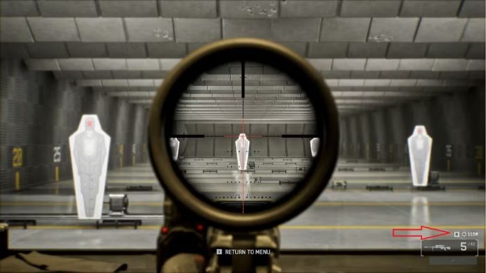 Khi sử dụng Range Finder, một vạch chỉ thị sẽ xuất hiện trên màn hình, cung cấp thông tin về khoảng cách ước tính đến mục tiêu đang ngắm. Thông tin này cho phép người chơi điều chỉnh điểm ngắm của họ, bù đắp cho sự rơi của viên đạn do trọng lực và khoảng cách.