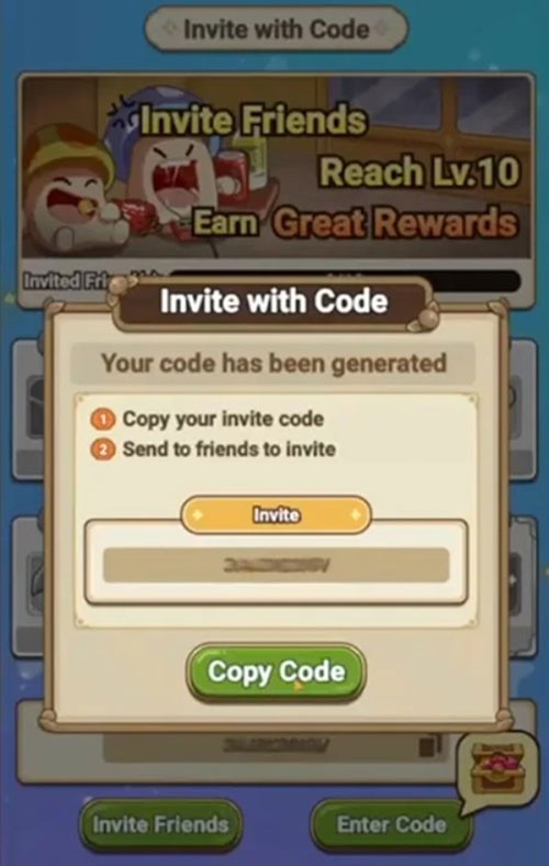 Bên cạnh đó, người chơi cũng có thể sử dụng mã mời do bạn bè cung cấp. Thay vì chọn Mời bạn bè sau khi chọn Mời từ menu, hãy chọn Nhập mã.