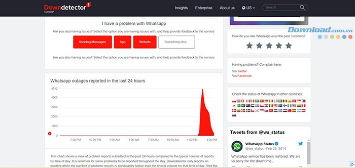 Ứng dụng WhatsApp thường hoạt động ổn định, do đó người dùng ít khi phải đối mặt với các sự cố. Tuy nhiên, đôi khi ứng dụng có thể gặp gián đoạn. Để kiểm tra xem sự cố có phải do lỗi hệ thống hay không, bạn nên truy cập trang web Downdetector.