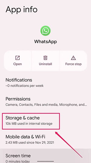 Cache là dữ liệu tạm thời mà ứng dụng lưu trữ để tăng tốc độ tải. Tuy nhiên, cache bị lỗi có thể gây ra sự cố. Hãy xóa cache của ứng dụng WhatsApp trong cài đặt điện thoại.