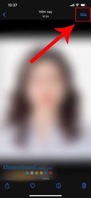 Đầu tiên, mở ảnh chân dung trong thư viện ảnh trên iPhone và nhấn vào nút Sửa ở góc trên bên phải.